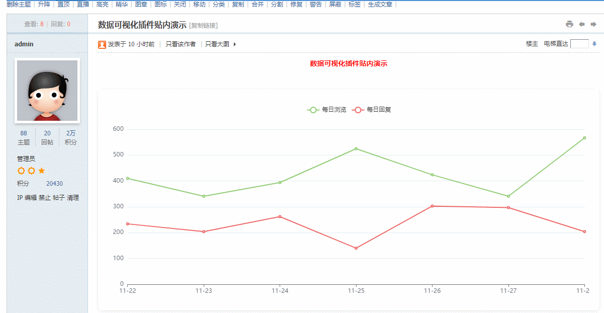 【動態演示】帖子每日數據可視化每日查看回復數據可視化 柱狀圖 查看全文