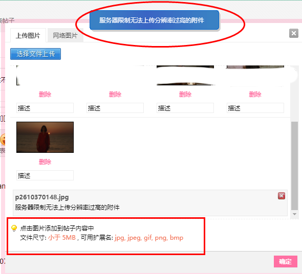 服務器限制無法上傳分辨率過高的附件 的意思是
