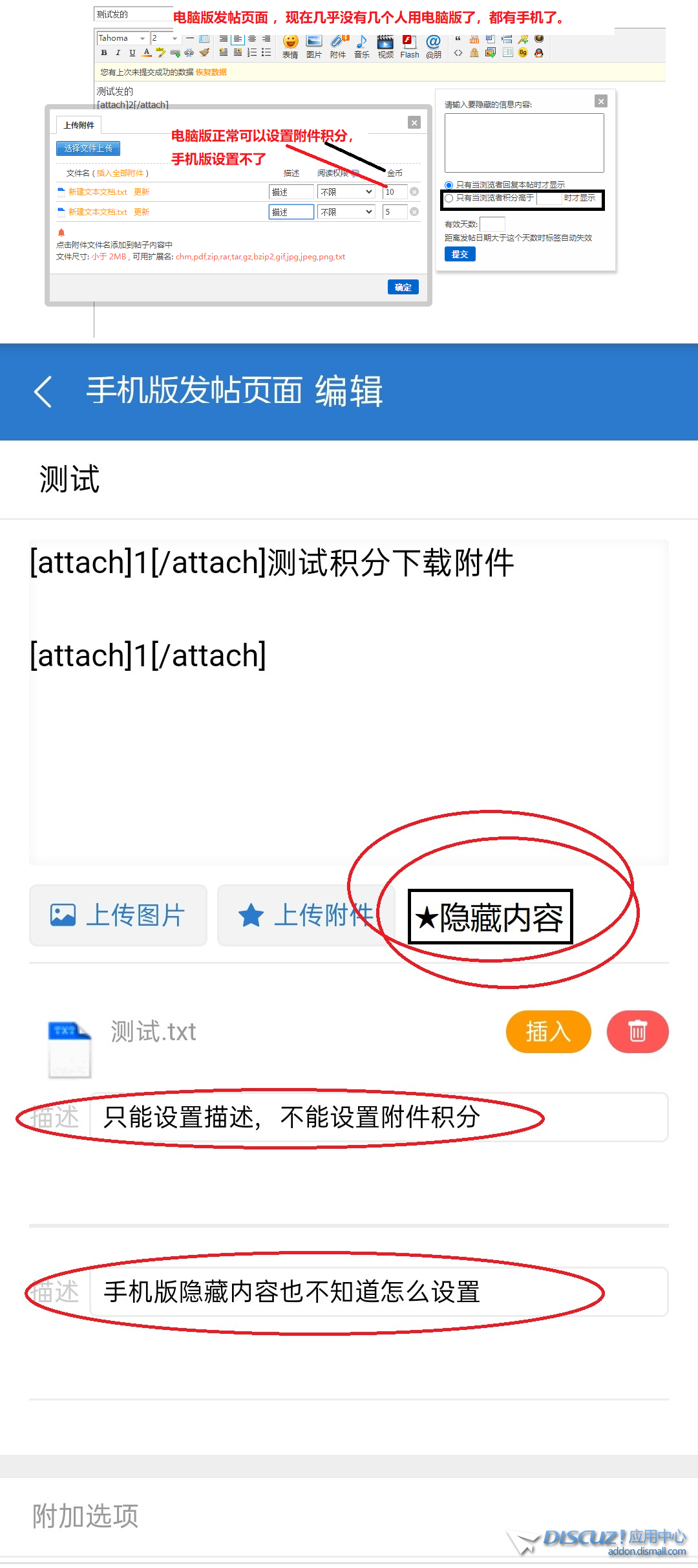 [已處理] discuz3.5的bug附件上傳手機版不能設置附件積分下載,電腦版可以設置。 |