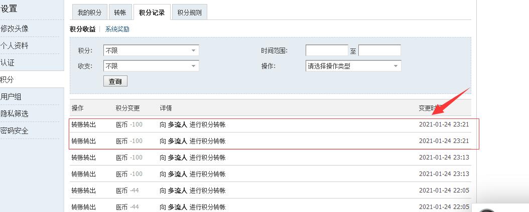 [已處理] 積分轉(zhuǎn)賬會(huì)重復(fù)扣積分 |